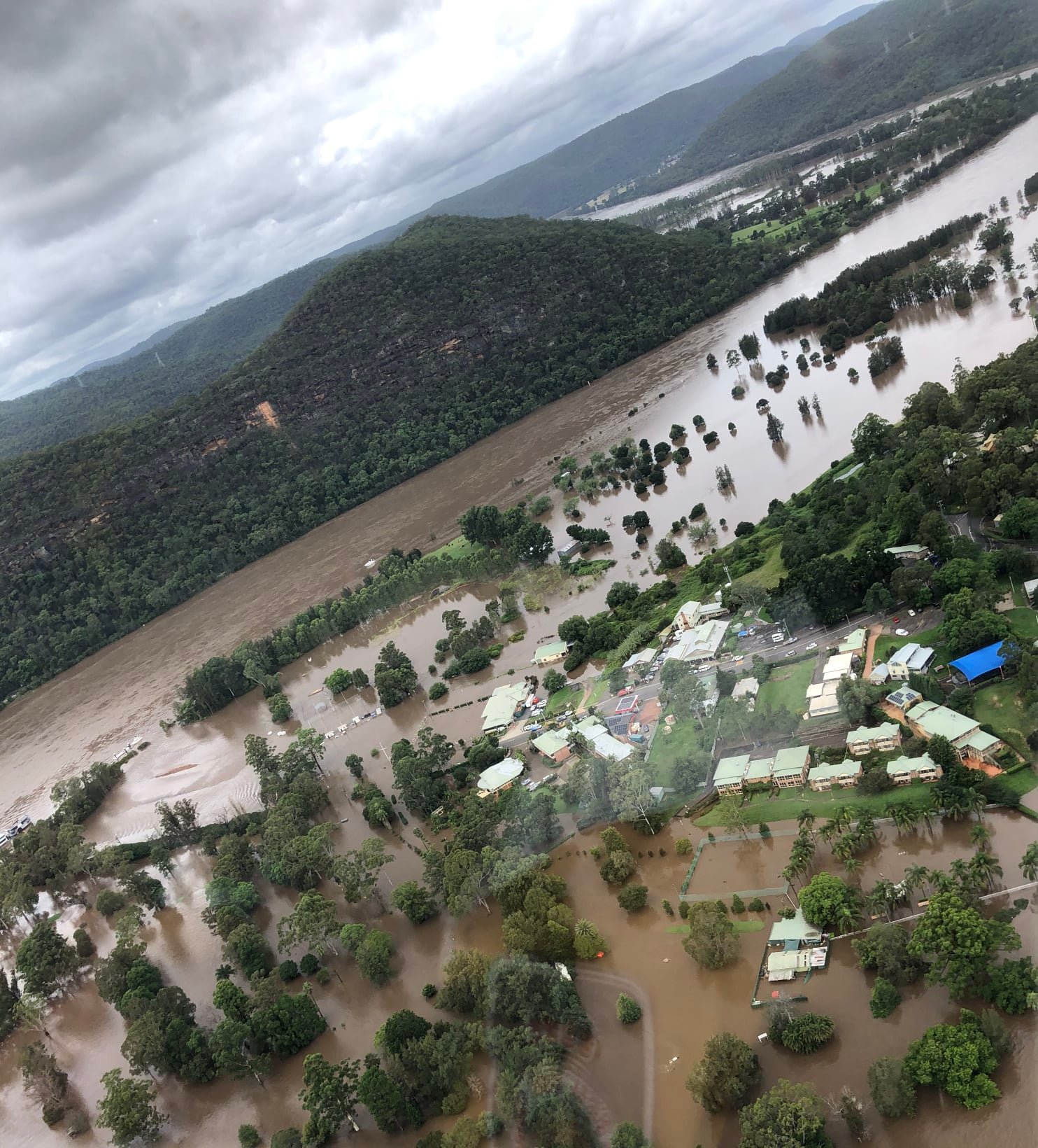 Main picture: NSW SES’s view from HT201 over Wiseman’s Ferry on 7 March.