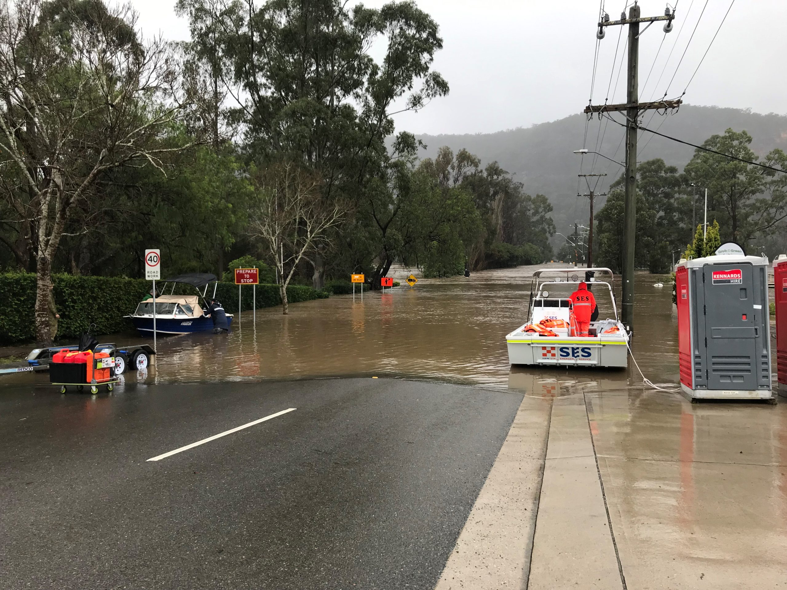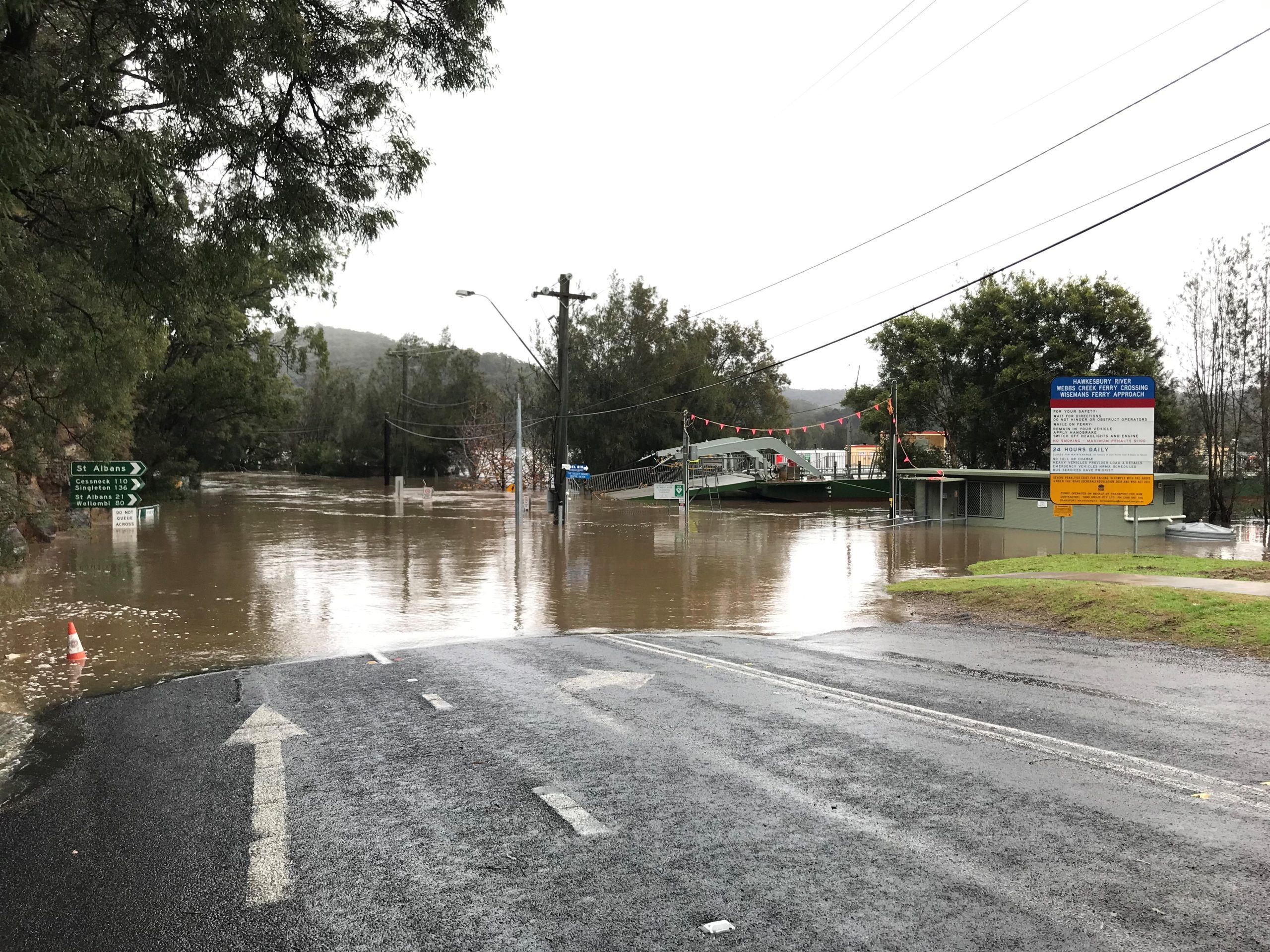 With major flooding in the Sackville, Lower Portland and Wisemans Ferry areas, Mayor Gangemi urged residents to delay unnecessary travel until conditions eased and to be careful of fallen trees and potholes opening up again.