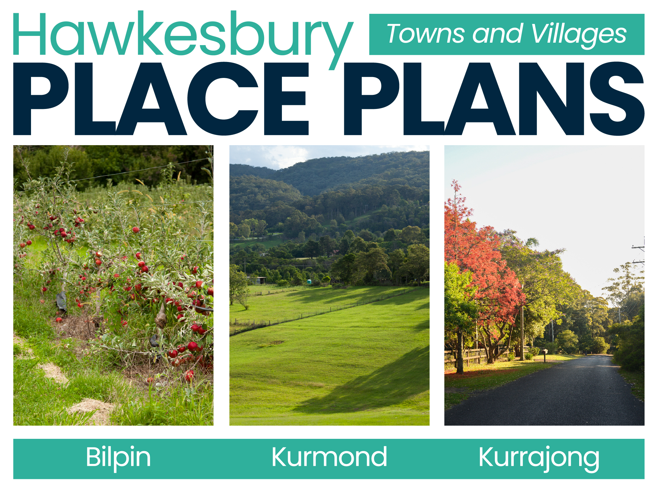 Council is undertaking place planning for all town and village centres in the Hawkesbury Local Government Area as part of Council’s Local Environmental Plan update. The Bilpin, Kurmond and Kurrajong Place Plans are being developed alongside these other plans. Feedback from early engagement activities will be used to understand what people like about the centre as well as some of the challenges facing the community and local business.