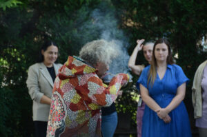 Elder Graham Davis KIng performing a smoking ceremony to open the new safe place