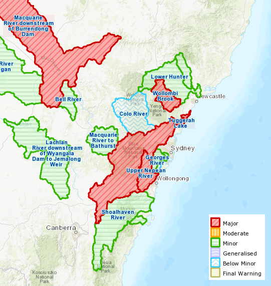 Main image: Major flood area warnings. Bureau of Meteorology, Australia, @BOM_au